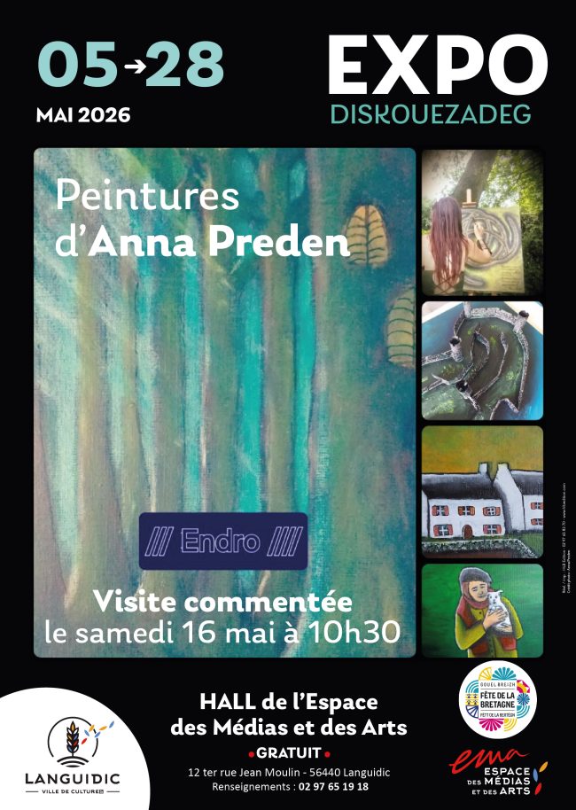 20265 mai 2026Expo "Endro" 5-18/05/2026 (Languidic)- Visite gratuite avec explications en présence d'Anna Preden le samedi 16 mai à 10h30 + vente de cartes/ affiches en soutien à ses actions